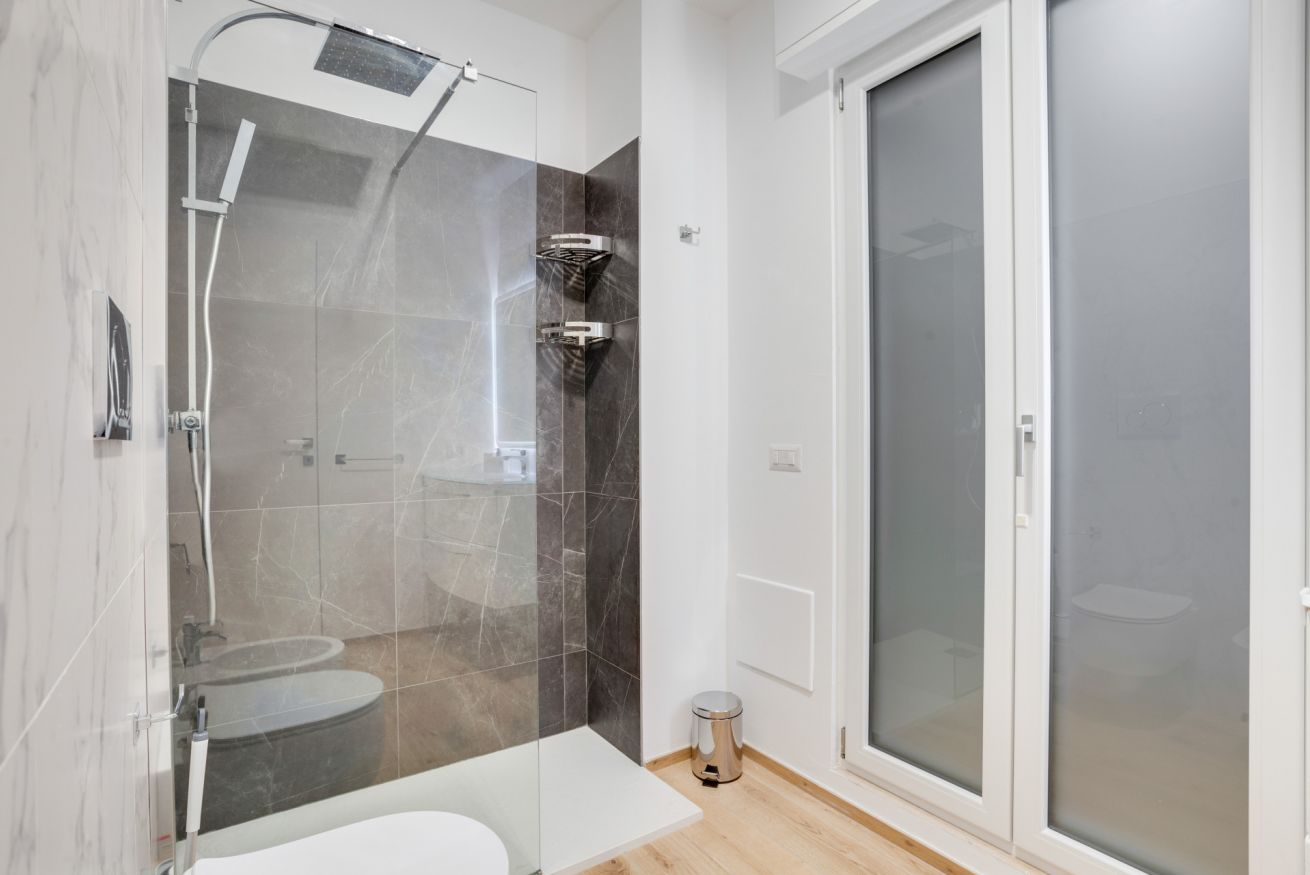ULTERIORI SERVIZI A DISPOSIZIONE DEGLI OSPITI: wifi illimitato, aria condizionata con pompe di calore (condizionatore a soffitto in zona living e in camera da letto), ventilatore, finestre insonorizzate, videocitofono, ferro e asse da stiro, stendibiancheria, lavatrice (nel ripostiglio in terrazzo) e asciugacapelli.