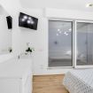 - CAMERA DA LETTO con letto matrimoniale, cassettiera, guardaroba, smart TV e accesso alla terrazza (rialzato, circa 25 cm)