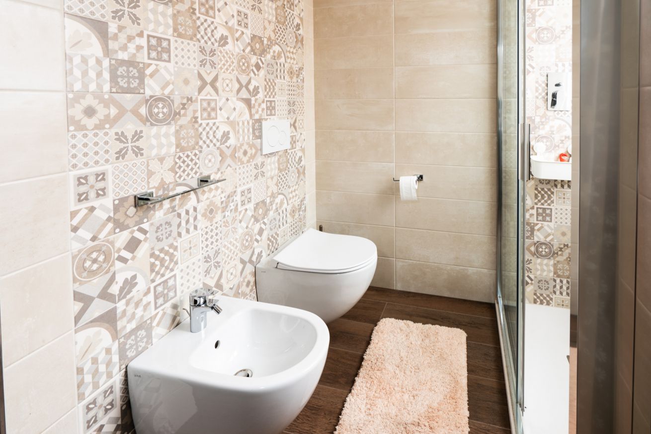 - BATHROOM I with shower, washing machine, sink, bidet, and toilet;