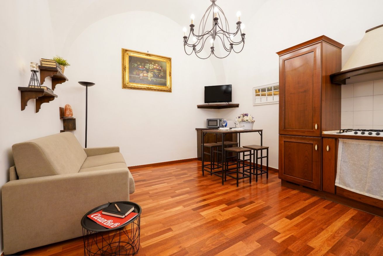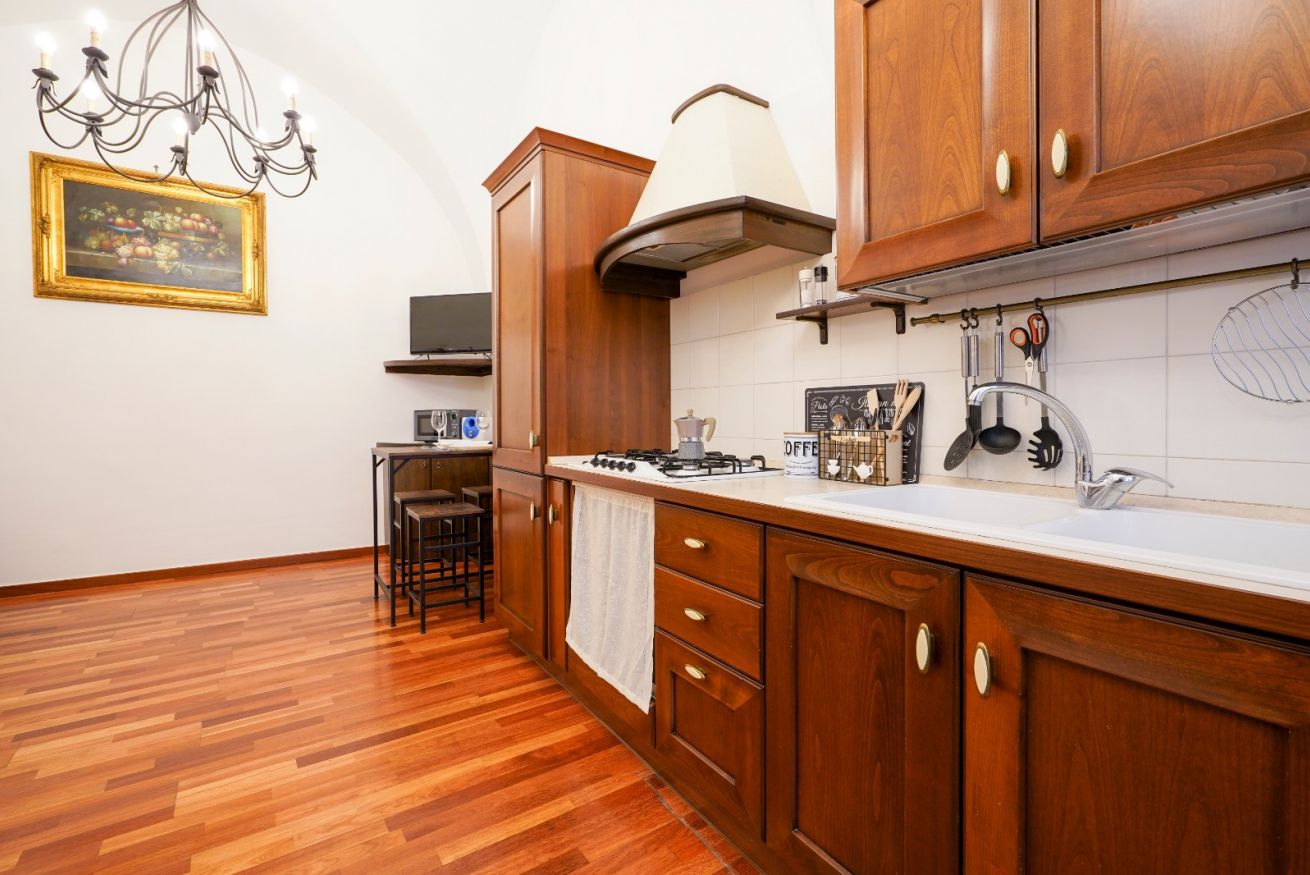 The 55 mq apartment is located on the first floor of a historic house without a lift (6 high steps to access) and has an independent entrance.
