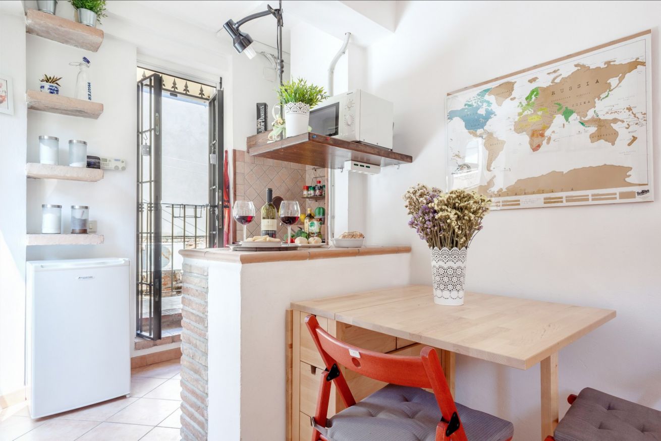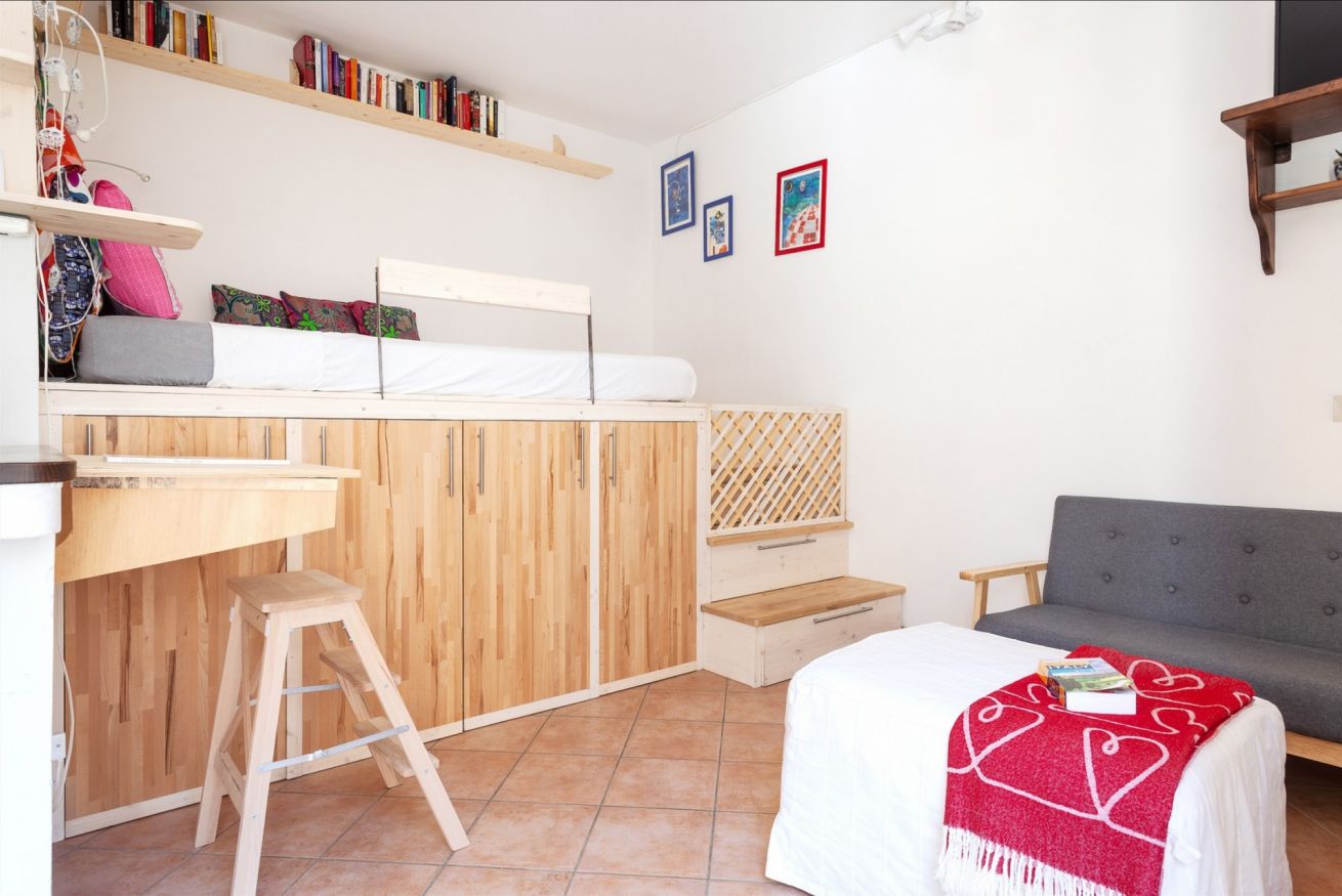 Cozy and comfortable 36 sqm studio apartment for 3 people with a double bed and a folding bed, located on the first floor of a recently renovated period building, without lift. Balcony with table and two chairs for relaxing in the evening.
