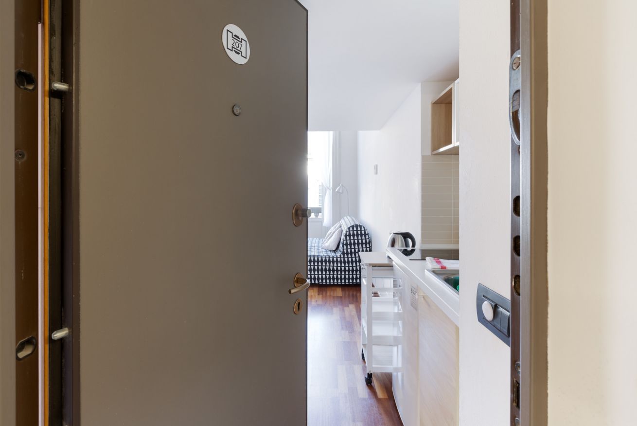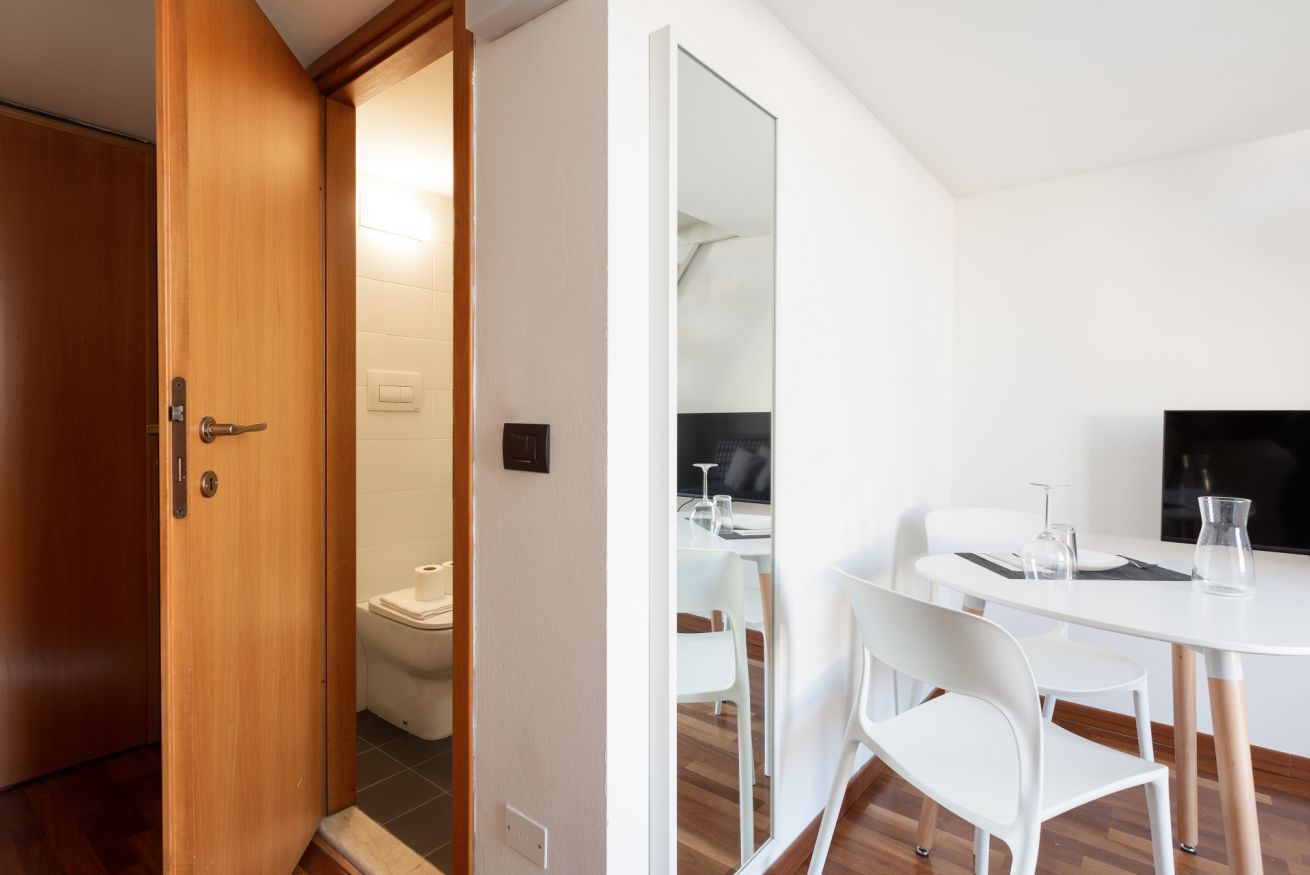 The approximately 25sqm apartment number 207 is located on the second floor with lift of an elegant Milanese building with concierge, has all the main comforts and is organized as follows: