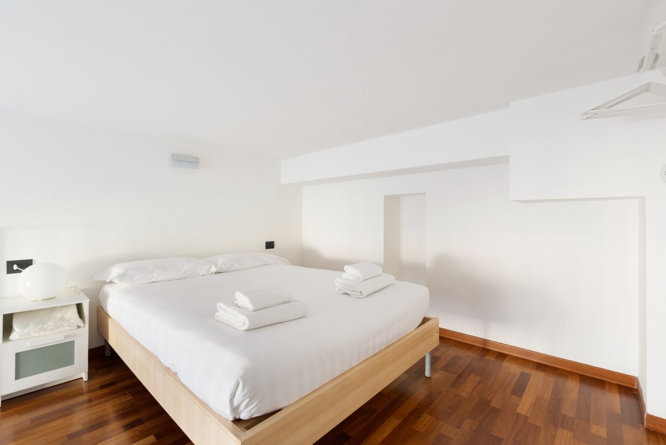 - LOWER LEVEL with relaxation area with sofa bed and small kitchenette with 2-burner hob, kettle, small fridge. Private balcony facing Corso Magenta.
