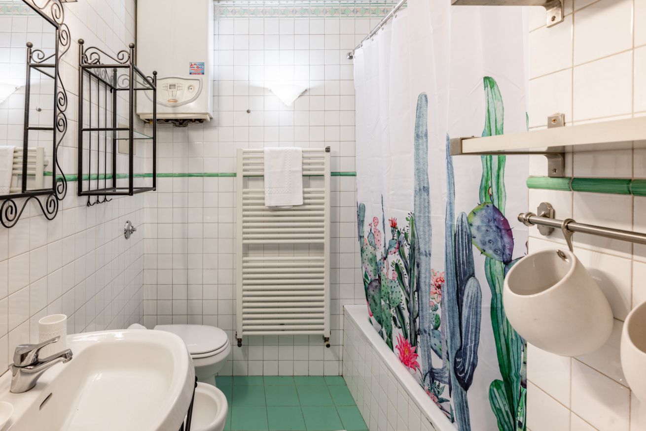 BAGNO. Vasca con doccia, bidet e asciugacapelli.
