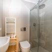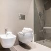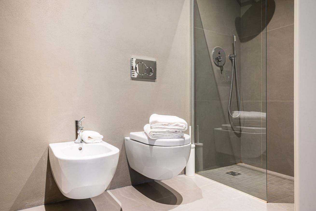 BATH. Shower box, bidet, hairdryer, washing machine.