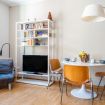 LIVING AREA. American kitchen with 4 induction burners, Nespresso coffee machine, microwave oven and traditional oven, dishwasher and various kitchen utensils, living room with sofa and 40" TV.