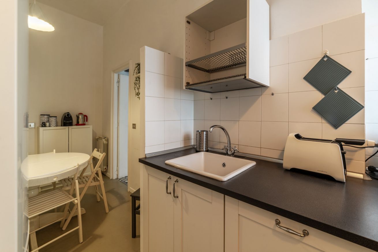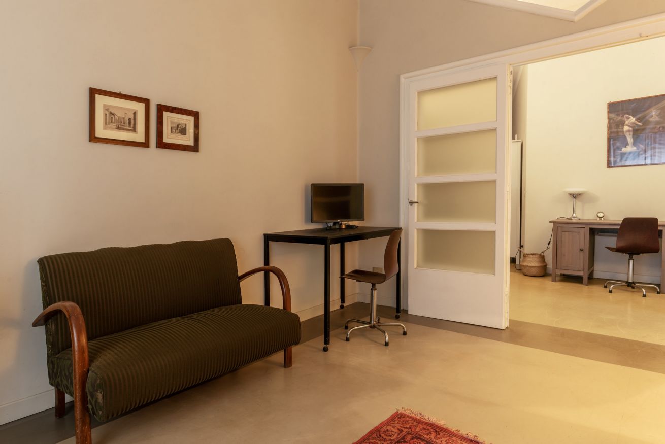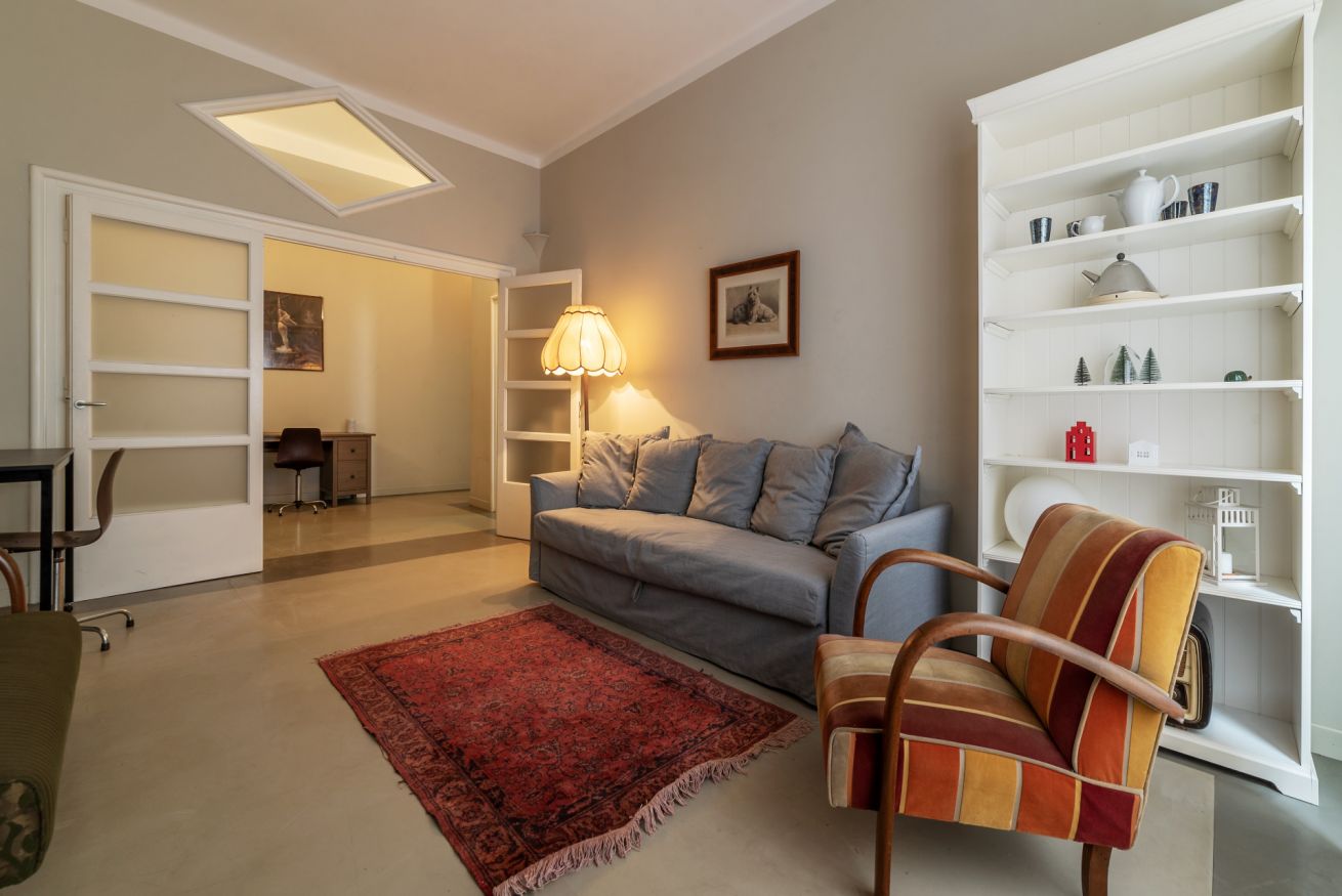 Comfortable apartment located on the mezzanine floor of a renovated period building, with four floors in total. There is a flight of stairs at the entrance