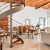 -SALONE: luminoso salone con tavolo da pranzo, divano, impianto stereo, scala di accesso al soppalco.