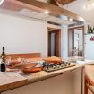 -CUCINA: ampia cucina con isola centrale, ideale per chef a domicilio e per organizzare eventi di showcooking. Attrezzata con piano cottura 5 fuochi, frigorifero, lavastoviglie, tostapane, minipimer, tavolo da pranzo, accesso al terrazzino e split A/C.