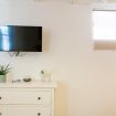 - SLEEPING AREA with double bed, sofa bed, chest of drawers, wardrobe, 30 inch smart TV (NO antenna);