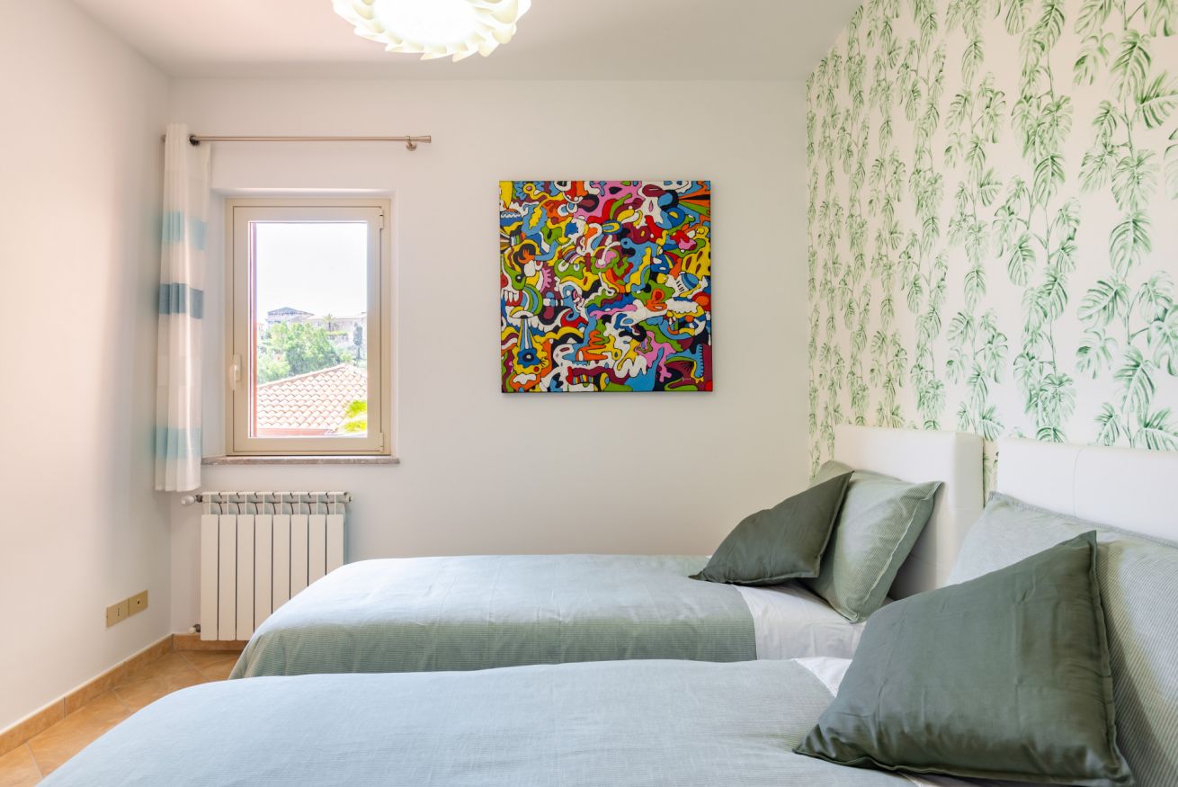 -CAMERA DA LETTO 2 con due letti singoli, ventilatore e armadio.