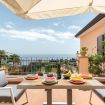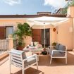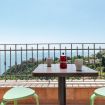-TERRAZZO panoramico con sedie, sdraio, tavolino e ombrellone.
