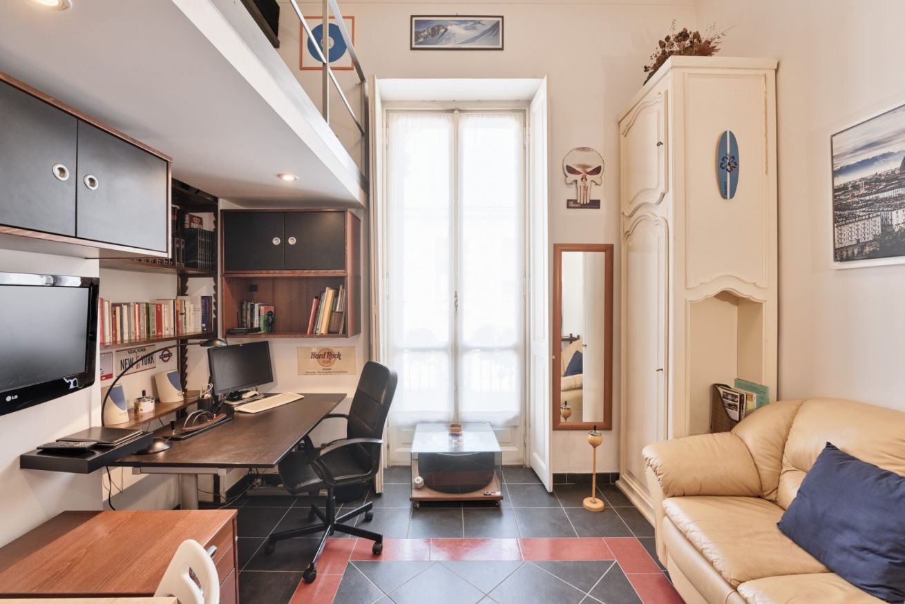 Nice and comfortable 22 sq.mt loft studio apartment, located on the first floor of a period building with a lift (but not suitable for the disabled), in a lively and very safe area, behind Piazza Vittorio Veneto and a few steps from the Mole Antonelliana and near the Royal Gardens.