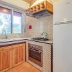 - LIVING AREA with KITCHENETTE (gas hob - 4 burners, fridge with freezer, electric oven, wine glasses, kitchenware), dining table, single sofa bed and fireplace (NOT working);