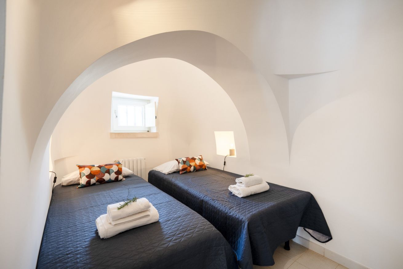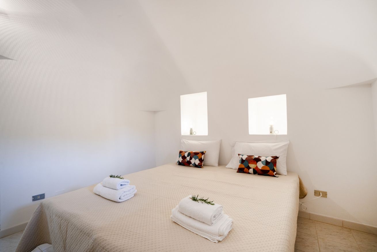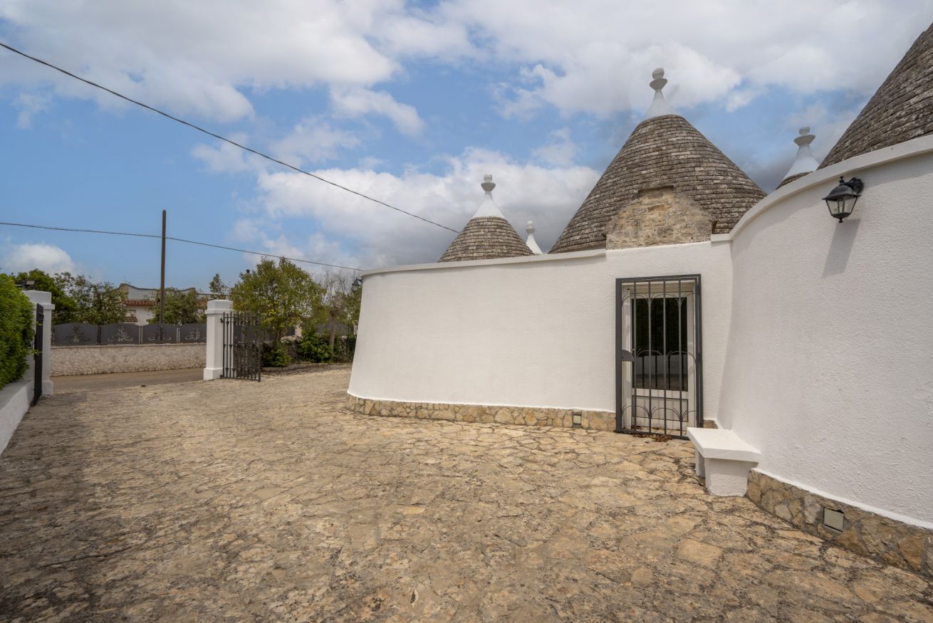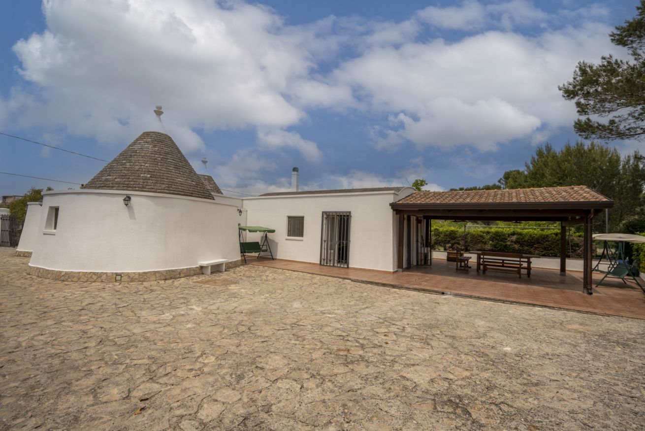 L'alloggio di circa 150 mq si trova al piano terra di un complesso di trulli e dispone di un grande giardino con barbecue, dondoli e canestro da basket.