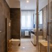 BATHROOM 1 (inside Bedroom 1). Shower cubicle, bidet, toilet, sink and hairdryer.