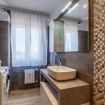 BATHROOM 2. Shower cubicle, bidet, toilet, sink, washing machine and hairdryer.